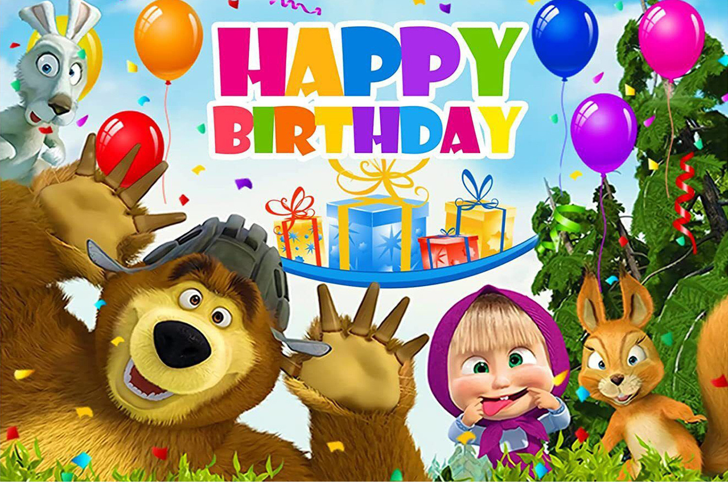 Πίσω φόντο με τη Μάσα και την Αρκούδα γεμάτο διασκέδαση για παιδικά γενέθλια 150εκ*100εκ