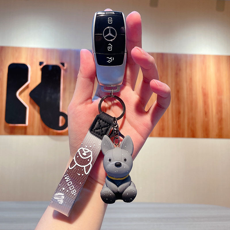 Llavero de perro gris brillante.