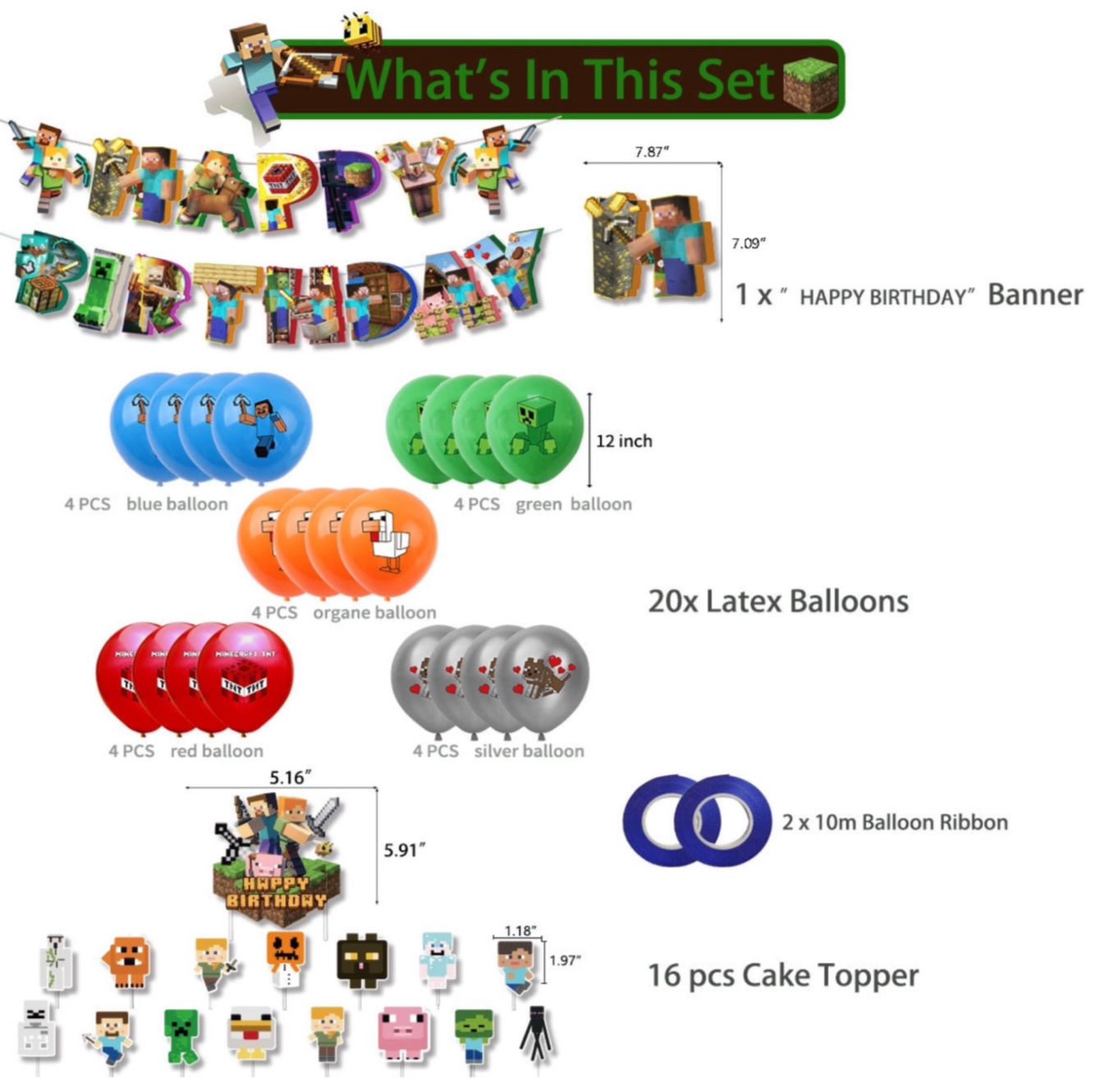 Ensemble de décorations pour fête d'anniversaire Minecraft