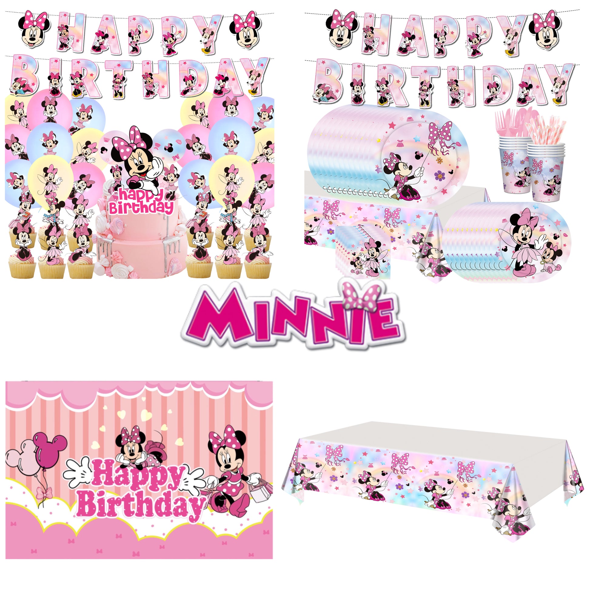 Ensemble de décorations de fête pastel rose Minnie - décoration de table
