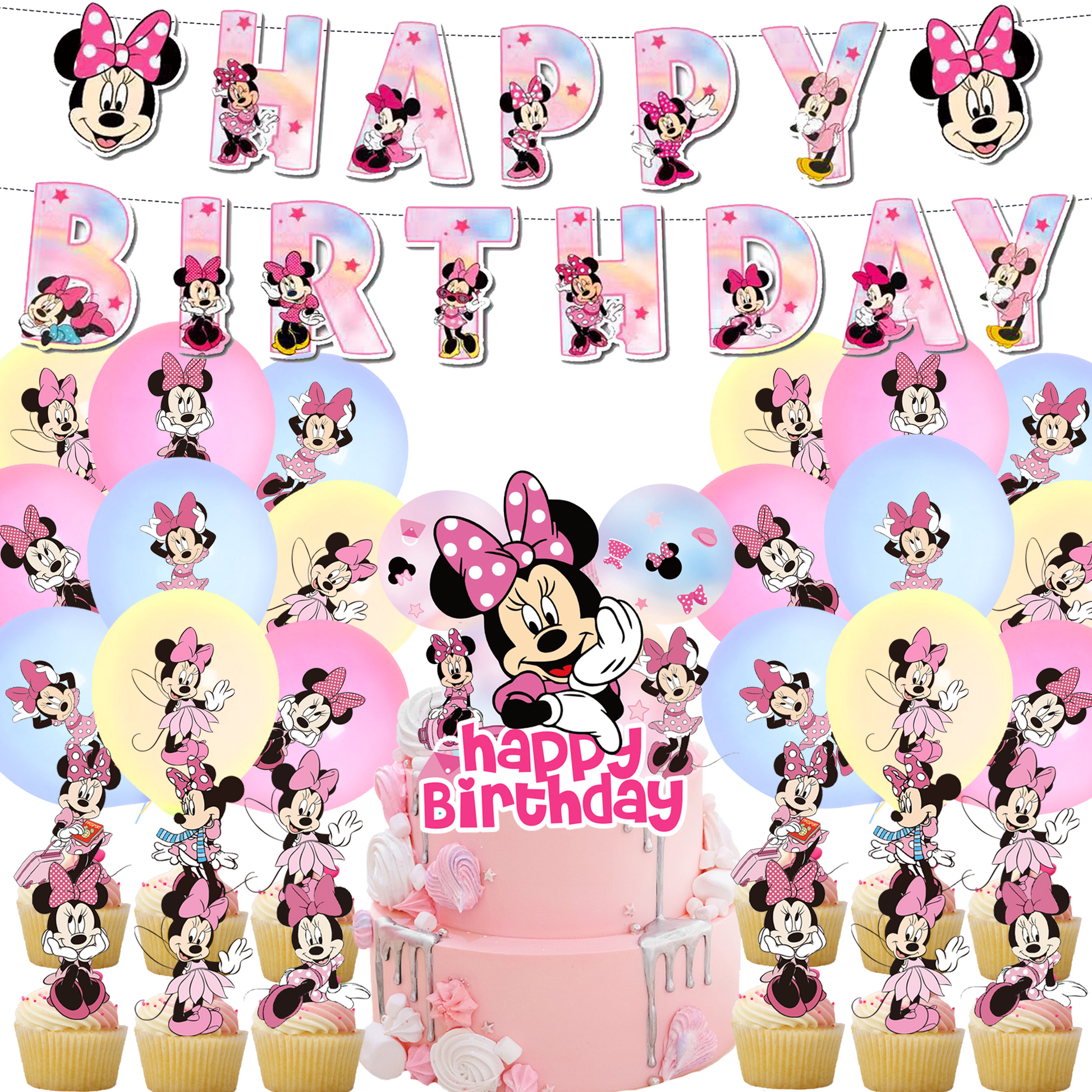 Décorations de fête Minnie rose pastel